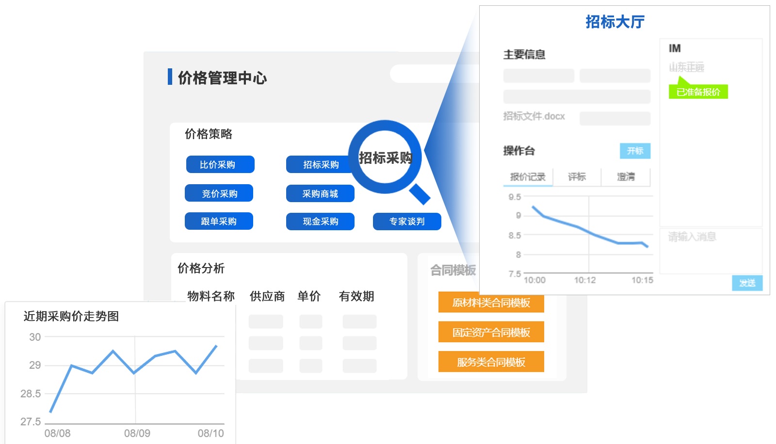 提供采购预询价、比价采购、招标采购、竞价采购、采购商城、单一来源、跟单采购、专家谈判等多方式寻源,适配各种采购需求。