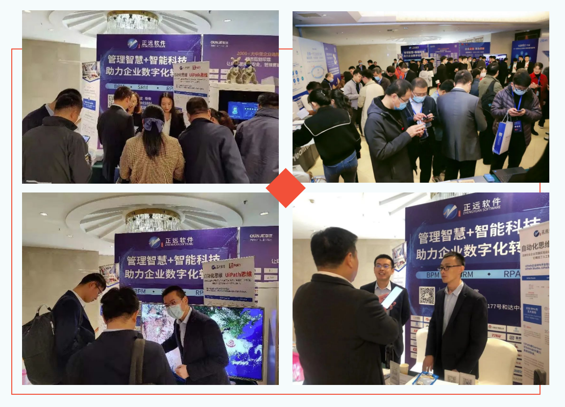会议伊始,正远软件展台前嘉宾络绎不绝,门庭若市。来自老客户的关怀问候,和众多新客户的了解关注,接踵而至。大家围绕企业如何通过数字化管理提升竞争力,如供应链上的降本增效,流程机器人的普及应用等问题进行深入交流。