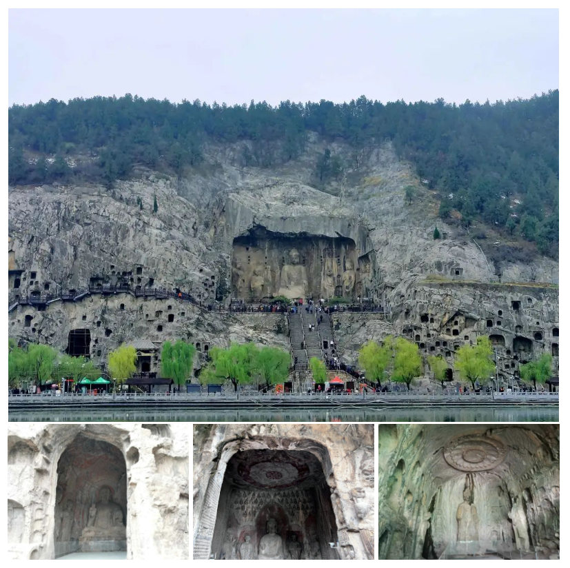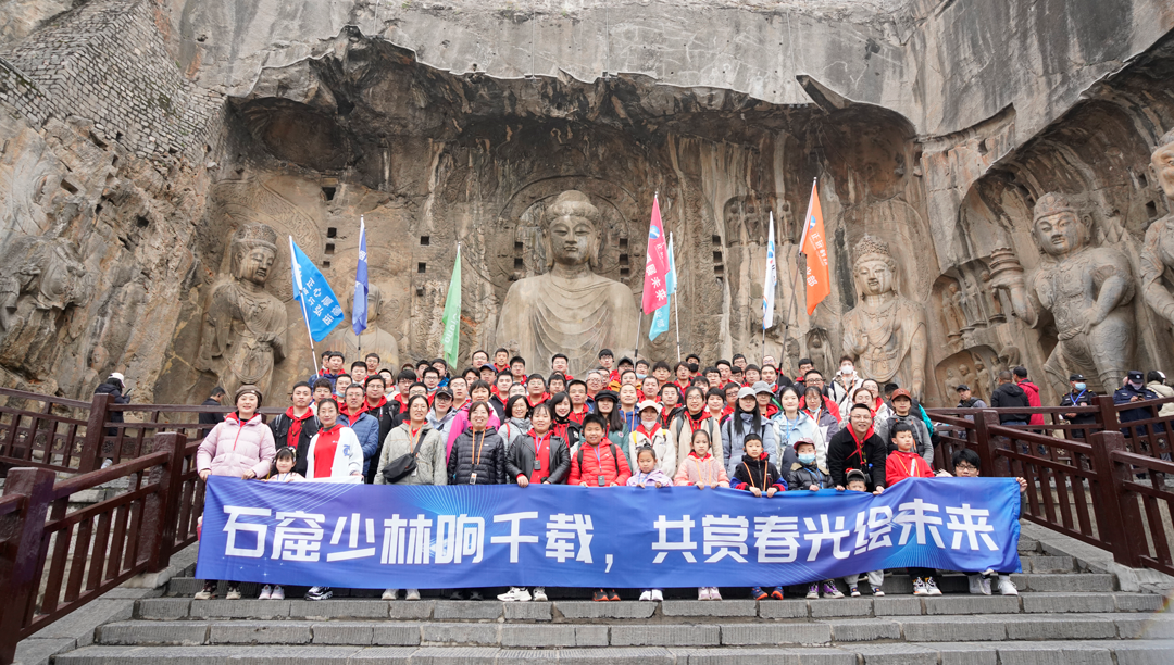活动首日,上午大家首先兴致勃勃地参观了中国各大石窟之首——龙门石窟。悉心听取导游讲解了大禹治水与鱼跃龙门的传说,领略了北魏至唐朝年间,不同朝代的文化与艺术融合下的石窟特色。宾阳洞中的“剪刀手”佛像,让人忍俊不禁;唐高宗年间修建的万佛洞,洞内南北两壁整齐刻有一万五千尊小佛像,每尊只有四厘米高,生动细致,令人赞叹不已;莲花洞中,石窟顶部硕大精美的高浮雕大莲花栩栩如生,人民大会堂的莲花顶就是依据此莲花设计而成。