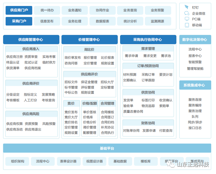 正远SRM数智化管理平台涵盖采购全业务流程管理,通过对供应商管理、价格管理、采购协同管理的数智管控,为企业打造一个内外统一的采供平台,实现采购业务的可量化和可视化管理,最终助力企业达成降本增效的管理目标。